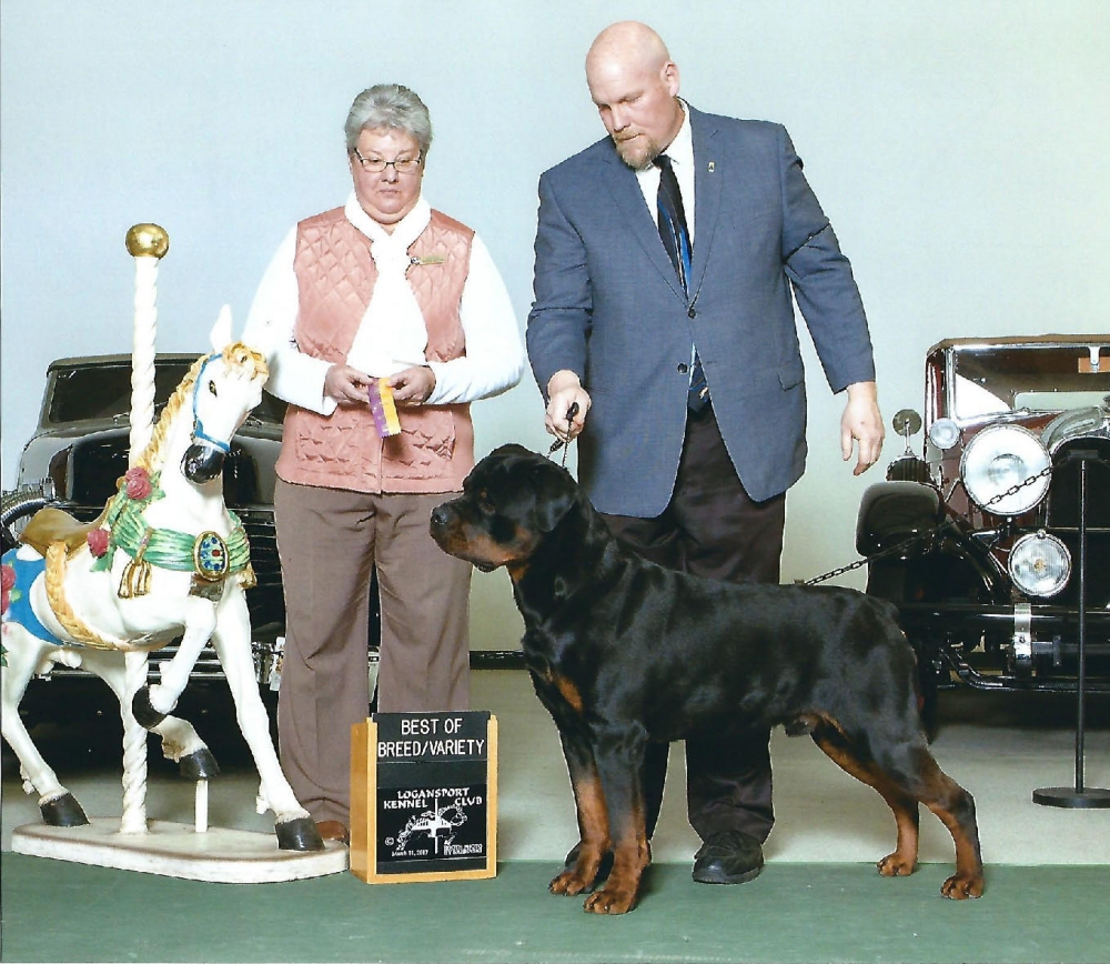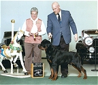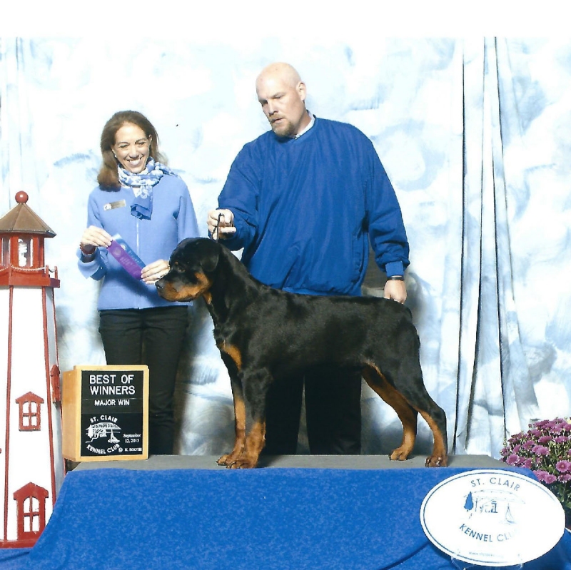 Boston began his successful show career early. At 6 months old he won his first major in his first show under breeder judge Lee Whitaker. Boston went on to finish with 4 majors—3 of those out of the puppy classes—before the age of 2. Boston has beautiful breed type and is a great companion and pet as well. He has been doing well in limited showing as a special with his friend and handler, Tim Conradt. Look for Boston showing locally while we wait for this boy to finish growing up.