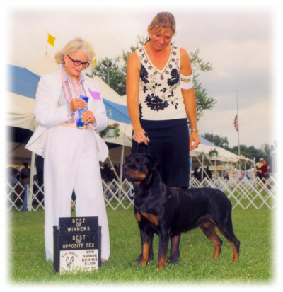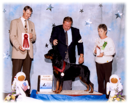| BISS Am/Can Ch. Von Baker's Money Talks, ARC BOW, Multi-BOB/BPIB, Group 1 puppy/adult, and Multi-Group placer |